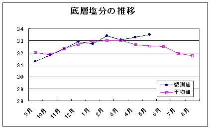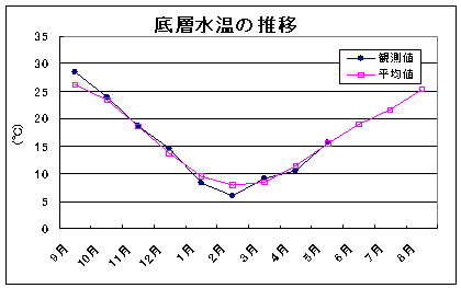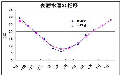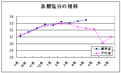 | ・表層はやや高め、底層は平均並みでした。 | |