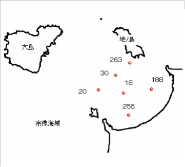 平成21年7月6日,7日及び14日に実施した,マダイ幼魚資源調査の結果をお知らせします。7月6日は奈多海域,7日は宗像・新宮海域,14日は唐津湾海域において1そうごち網漁船による調査を行いました。